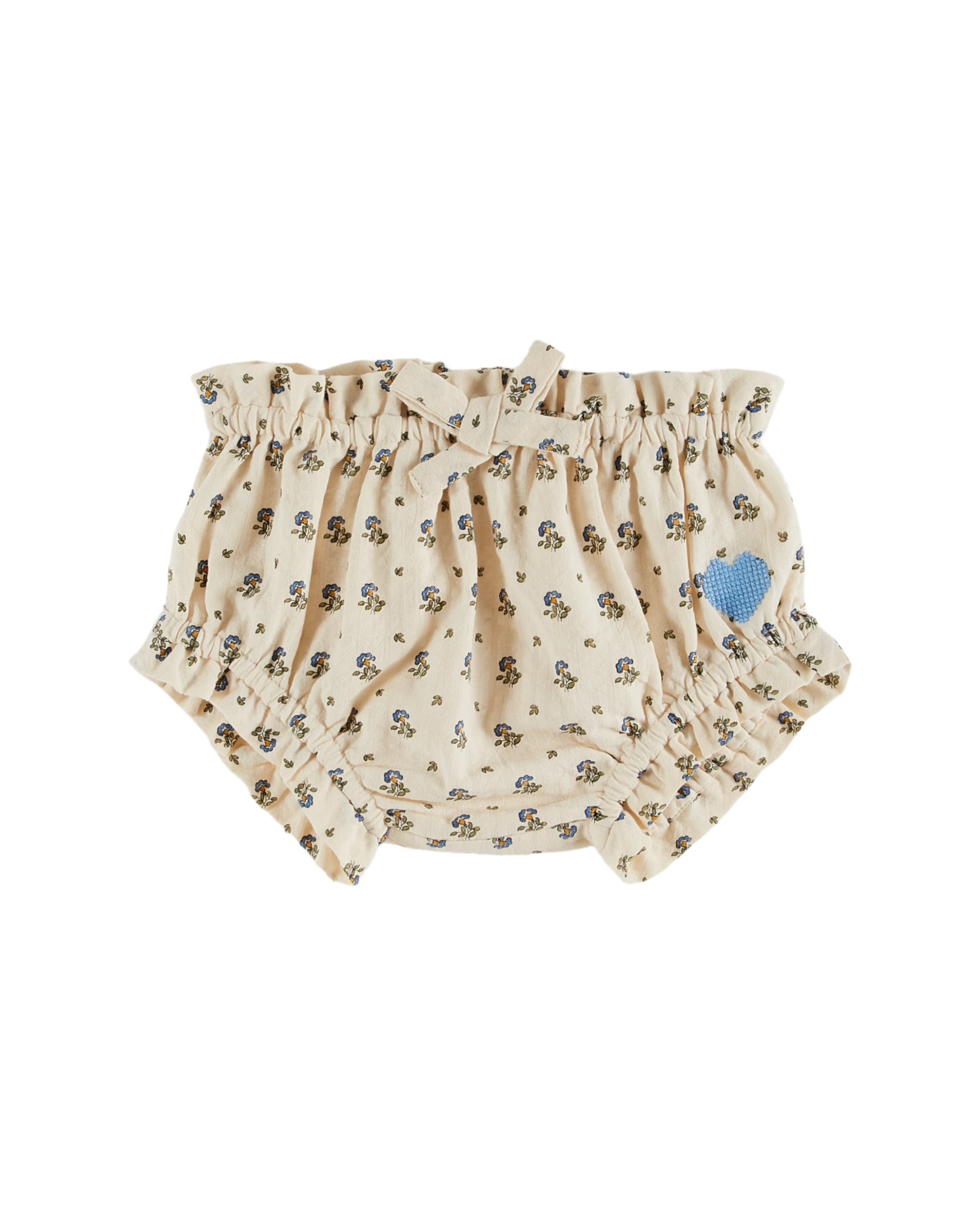 Bloomer en coton Dobby écru, orné de délicates fleurettes aux pétales bleues, parfaitement alignées.