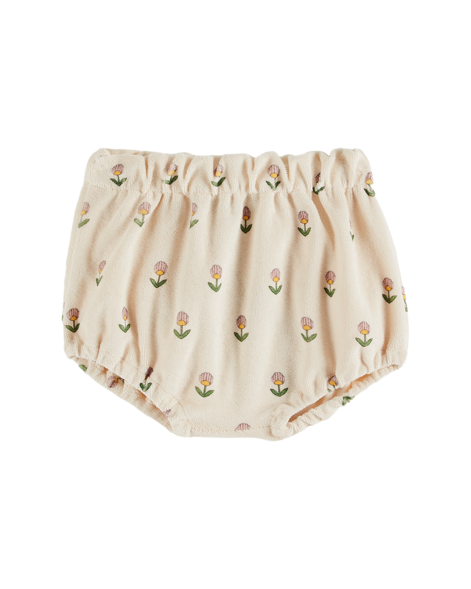 Ce bloomer en éponge écru est décoré de petites fleurettes roses. Confectionné dans un velours éponge ultra-doux, moelleux et extensible, il offre un confort inégalé. La taille et les cuisses élastiquées assurent une coupe confortable.