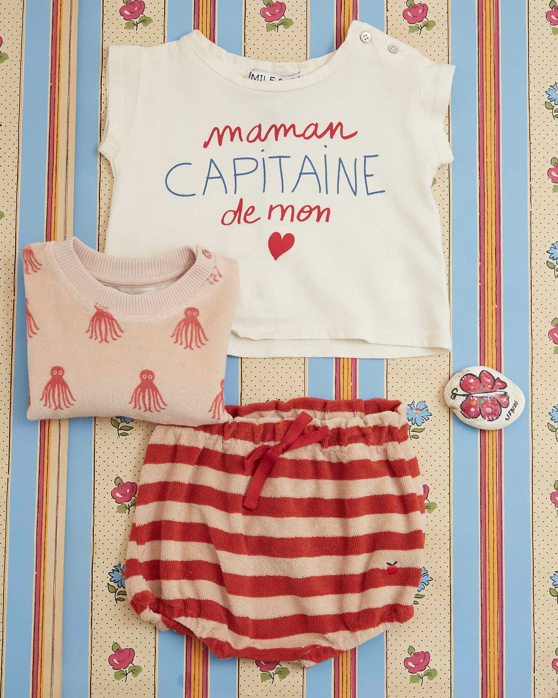 Associé avec un tee-shirt ou une petite blouse vos bébés seront les plus craquants en balade en ville, à la campagne ou à la plage. Le jeu : trouver la petite pomme brodée sur le côté.