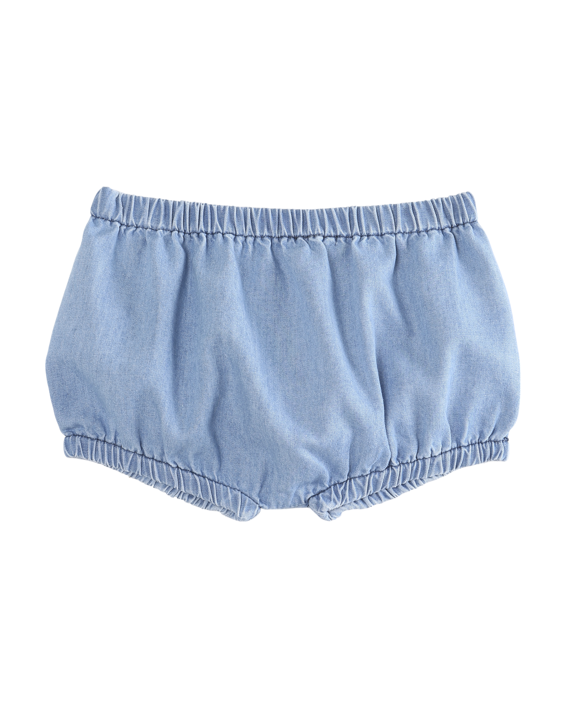 Bloomer en coton chambray. On aime le coton tout doux, tout léger et la forme confortable. Une petite culotte bouffante chic et intemporelle. Associé avec un tee-shirt, une petite blouse ou une robe vos bébés seront les plus craquants en balade ou à la plage.