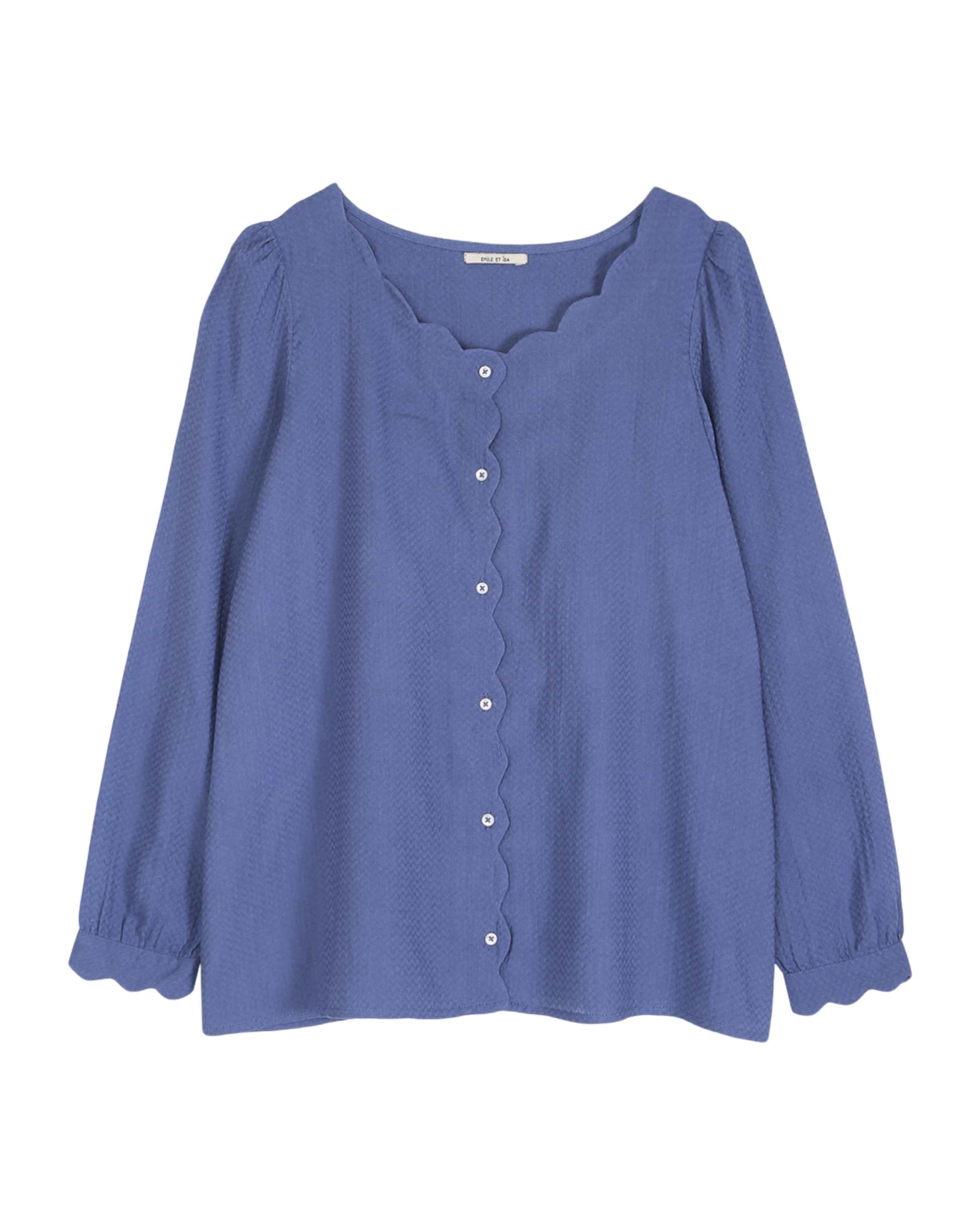 Blouse à encolure festonnée bleu