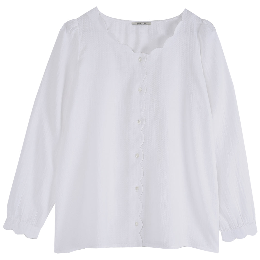 Blouse à encolure festonnée écru