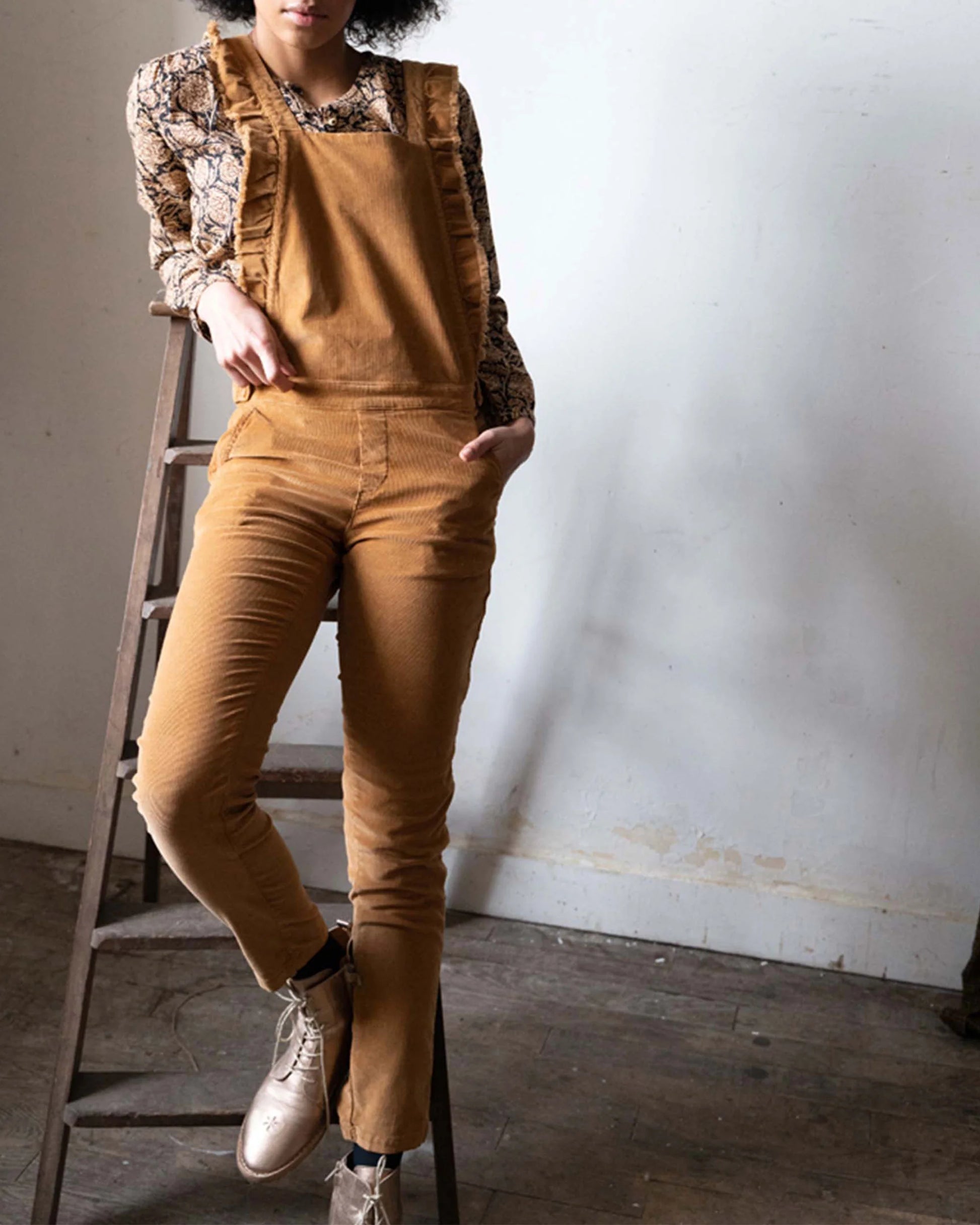 Salopette à volants stretch ocre