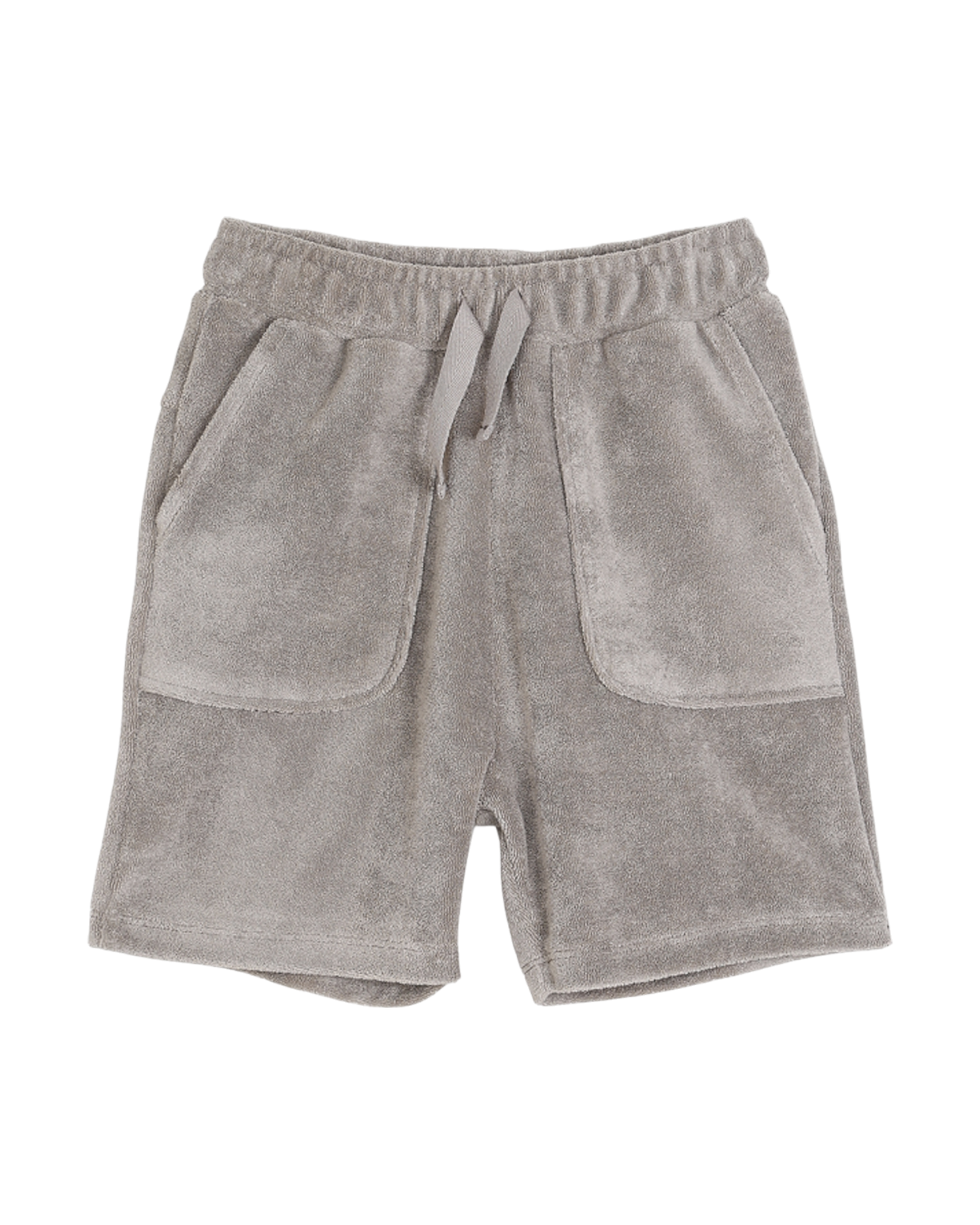 Short en tissu éponge gris. On aime le mélange de coton et de polyester tout doux, fluide et extensible, la ceinture élastiquée ajustable avec un lien en coton sergé ton sur ton et les 2 grandes poches plaquées. Le polyester, ajouté au coton, confère au tissu une élasticité exceptionnelle qui lui permet de ne pas se froisser.